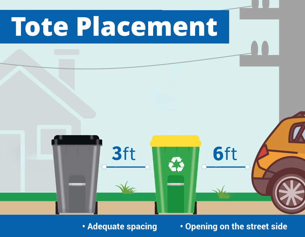 As you put your totes at the street, please keep these guidelines in mind, to provide adequate access for the Waste Management truck: